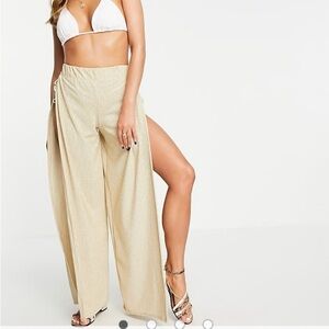 ASYOU flared split side beach pants in gold size 8