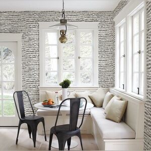 Bold and attention-grabbing, but as timeless and alluring as the ancient inscriptions and ink paintings that inspired the pattern. The charcoal brushstrokes pop against the wallpaper''s white background. Runes is a unpasted, non woven wallpaper. Unpasted non woven material; 10.4-in repeat, drop match; Washable and strippable; 20.5-in by 33-ft long roll; Covers about 56.4 square feet