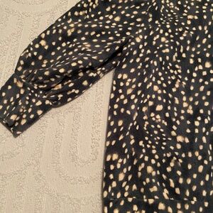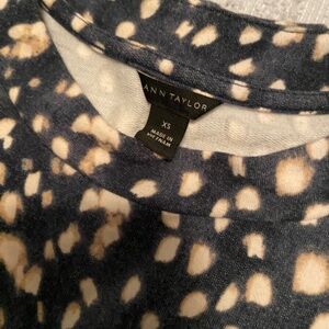 Marine Blue Sweatshirt Crewneck with blouson 3/4 sleeves and cream brushstroke dots.