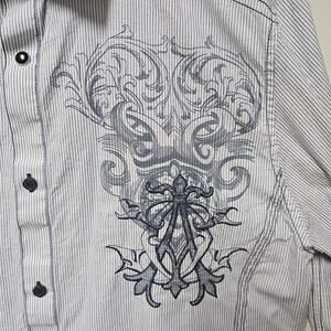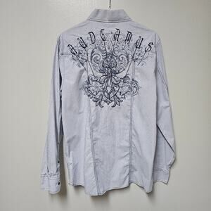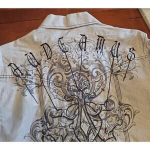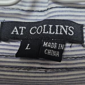 AT Collins Men's White/Gray Cotton Stripe Embroidered Button Up Shirt Size Large