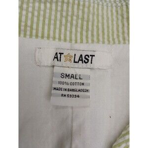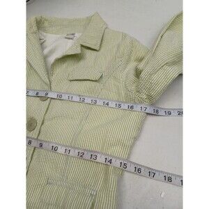 AT LAST Seersucker Striped Blazer Jacket Lined Girls Green White Striped Sz S
