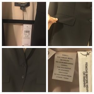 Flawless AT 12P suit jacket! Classy black, 2 front buttons. Fully lined in pink. Your best bet is to go to AT or Loft and try on one to see if you're a 12P. See approx. measurements below.