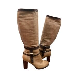 ATAKOY Tall Riding Leather Boot Brown Knee High Wool Lining Turkey EU 38 7.5 EUC