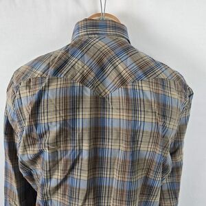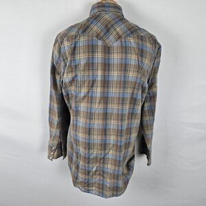 ATB Authentic Western Shirt Men 16 32/33 Brown Blue Plaid Snap Down