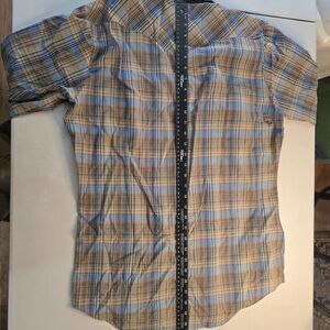 Color(s)/Pattern: Light Brown - Tan and Blue / Plaid