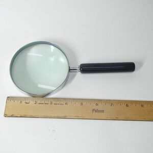Vintage ATCO reading glass. Magnifying glass with black handle. Total length is about 8.5 inches.