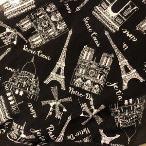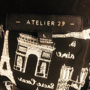 ATELIER 29 Iconic Parisian Imagery White Print Elbow Sleeve Black Blouse Sz L