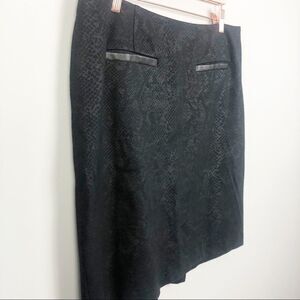 Beautiful all black skirt with snake print and faux leather pocket details. So on trend right now while keeping classy!! Back slit for comfort. Zip closure. Size 12.
