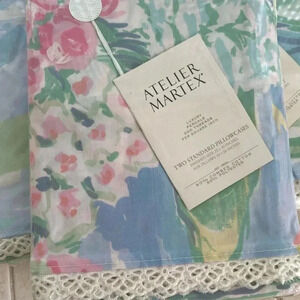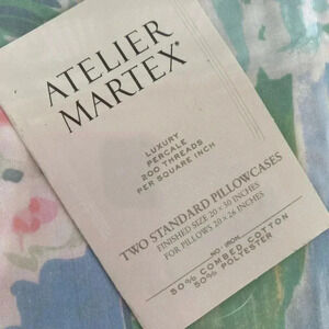 ATELIER MARTEX Vintage Claude Monet's Water Lilies Twin Flat Sheet and standard Pillow and two pillowcases New 1989. This item is new in package. Never opened. Twin flat sheet only. Measures: (sheet) 70x90. (Pillowcase) 20x30