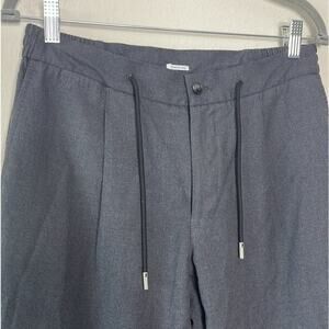 ATELIER MUNRO GRAY MEN'S TROUSER WOOL PANTS SIZE 30". Zip fly button closure, elastic waistband, drawstrings, pockets, pleat front , in gray. 100% wool , lining material 100% polyester. Pre-owned great condition. Measurements: waist , inseam 26.5"