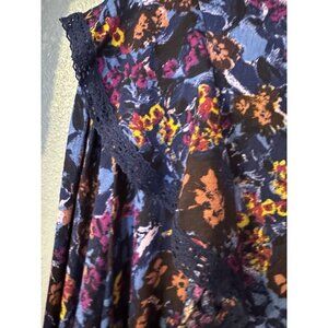 This lovely dress is from Atelier Reve in their size 38. Made of viscose. Pullover style with removable fabric tie belt. Has lace trimmed ruffles.