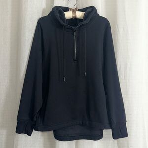 ATHLETA 2X Cozy Karma 1/4 zip Black Fleece Interior Sweatshirt Hoodie