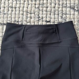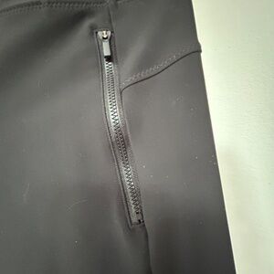• Pants: fitted, ankle length, 2 front zippered pockets, 1 back zippered pocket at waist, 2-inch slits at ankles