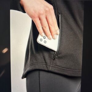 • Jacket: closure moto styled asymmetrical zipper, 2 front zippered pockets, approximate 26" from shoulder to hem covers bootie