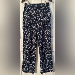 ATHLETA 4 PETITE Vienna Straight Leg Navy Print Cargo Stretch Center Seam Pocket
