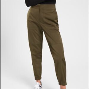 ATHLETA 8 Women's Radiant Olive Green Joggers Gorpcore Streetwear Athleisure Metallic Shiny Satin Comfy Sleek Stretch
