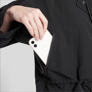 ATHLETA Acadia Sz M Women's Relaxed Jacket Draw Cords Lined Zip Pockets Black.