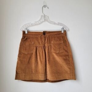 Athleta Cordoba Corduroy Womens Camel Brown Pocket Skirt Mini Button Zipper