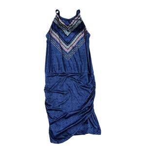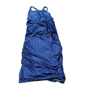 ATHLETA Aqualuxe Print Strappy Back Swim Dress Women's Size XS Blue Water Pool