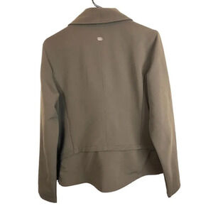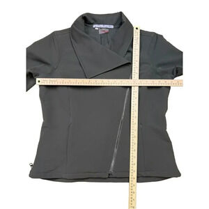 ATHLETA Asymmetrical Side Zipper Collar Green Moto Jacket w Side Vent Zip.