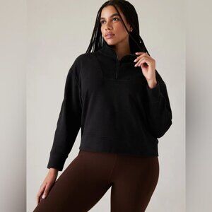 ATHLETA BLACK RETROPLUSH REVIVE HALF ZIP SWEATSHIRT SIZE M