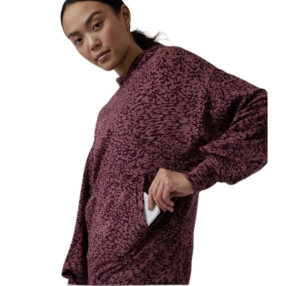 ATHLETA Balance Hoodie Ocelot Spot Twany Rose Sweatshirt Plus Size Nwot
