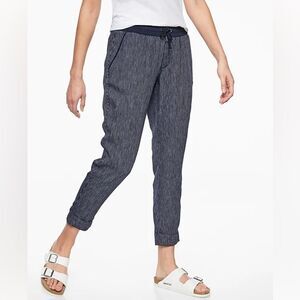 ATHLETA Bali Linen Lightweight Pinstripe Wide Legged Ankle Pants sz 4 Petite
