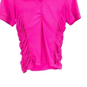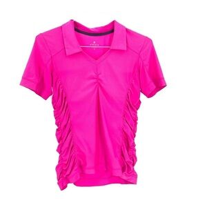 ATHLETA Birdie Ruched Short Sleeve Polo Golf UPF Athletic Top Preppy VNeck
