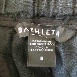 ATHLETA Black CABO 100% Linen Drawstring Waist Zip Pocket Mock Fly Jogger Pant