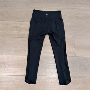 ATHLETA Black Mesh Chaturanga To Town High Rise Active Yoga Workout Capri Size S