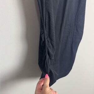 Cute and comfy black tank top by Athleta. Sleeveless. Scoopneck. Racerback. Gathered detail on the sides. Great preowned condition. Women’s size small.