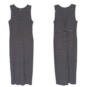 ATHLETA Black Stripe Twist Back Midi Dress Jersey Knit Sleeveless Women's XS