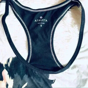 ATHLETA Black W/ Floral Light Weight Razorback Athletic Tank Top Size S