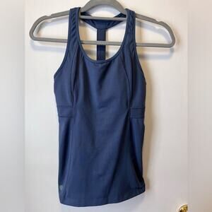 ATHLETA Blue T Strap Halter Tank With Built In Bra Size S