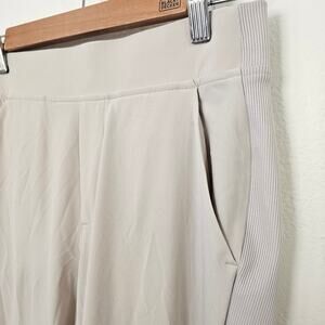 Cream colored lightweight ankle pants with ribbed waistband and side panels. Zippered back pockets. Size 10. Like new condition.