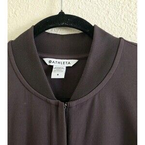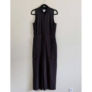 The ATHLETA Brooklyn Utility Jumpsuit in Shale Gray is a stylish and versatile one-piece perfect for travel, activewear, or casual outings. Featuring a V-neckline, zip closure, and a sleeveless design with cap sleeves, this jumpsuit offers a comfortable and stretchy fit with a blend of polyester and spandex fabric. It comes in a size 8 with a 29-inch inseam, making it suitable for summer, fall, and spring seasons. With plenty of pockets and a zipper accent, this jumpsuit combines practicality with a trendy athleisure style that is both easy to care for and machine washable. Perfect for the fashion-forward woman on the go.