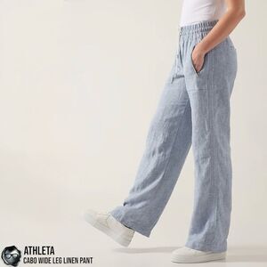 Athleta Cabo Linen Wide Leg Pants In Chambray Blue