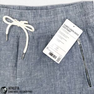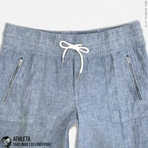 ATHLETA CABO LINEN WIDE LEG PANTS IN CHAMBRAY BLUE WOMEN 12/LARGE TRAVEL CASUAL