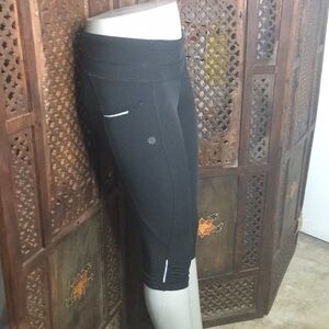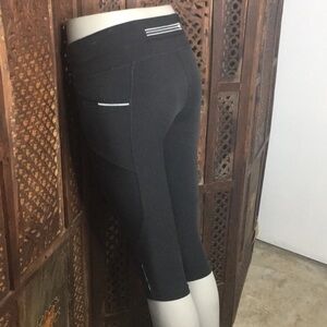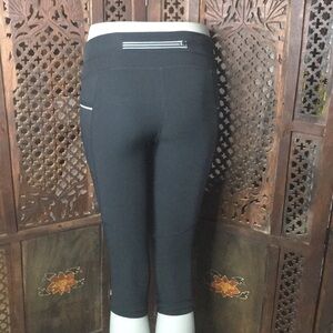 Athleta running leggings in black with 2 side pockets 1 zip closure pack pocket, infinity drawstring. Hight rise size XS