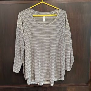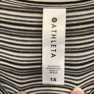This top is made by Athleta. It is a black and white striped loose fit. Size 1X and in very nice pre owned condition. Smoke and pet free home.