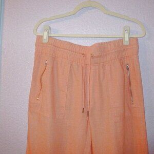 ATHLETA Cabo LINEN Jogger Size 12 PANTS Cactus Peach ZIP POCKETS Beach TRAVEL