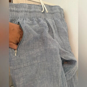 ATHLETA Cabo Linen Summer Resort Jogger Pants Chambray Blue Comfy Size 10