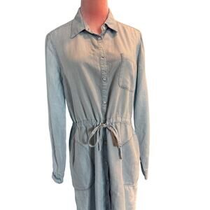 ATHLETA Chambray Shirt Dress, Long Sleeve with Button Cuff, Drawstring Waist, Pockets, Unlined, Curved Hemline, Soft!