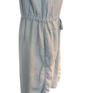 ATHLETA Chambray Shirt Dress L/S Drawstring Waist Pockets Curved Hi-Lo S Tall