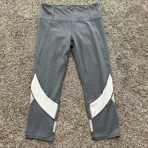 ATHLETA Colorblock Mesh Salutation 21” Crop Tight Gray White L