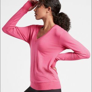 Athleta Dragonfruit Pink Long Sleeve Sunrise V-neck Sweatshirt