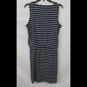 ATHLETA DRAPED TUNIC DRESS SIZE MEDIUM HEATHERED BLUE WHITE STRIPE
