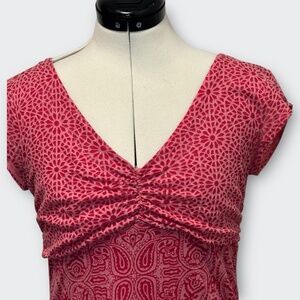 ATHLETA Dhara Pink Paisley Burnout Double Layer Dress S Travel Boho Coastal Casual