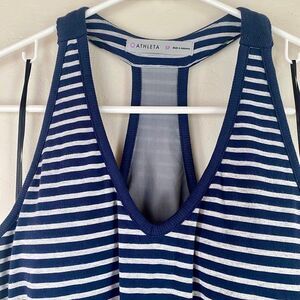 ATHLETA EMBER NAVY BLUE GRAY STRIPE RACERBACK SUPPORT TANK DRESS Womens Sz Small