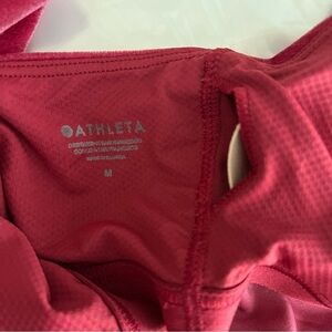 ATHLETA Elation Velvet Tight Leggings and Cropped Workout Top Matching Set. Hot pink color called "class". Elation velvet leggings (MSRP $59) and Elation Velvet Sports bra (MSRP $98) - both size Medium. High waisted leggings. Removable cups (included) and adjustable straps.